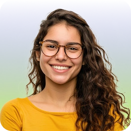Smiling woman with long brown hair wearing clear glasses, a pink blouse, and a silver necklace.